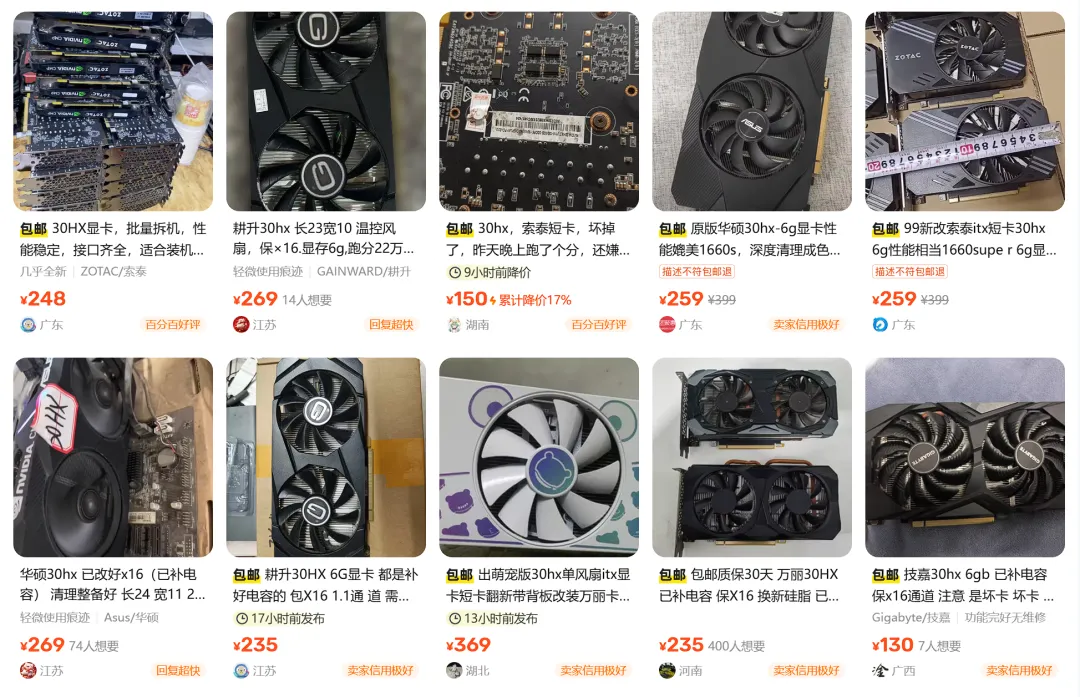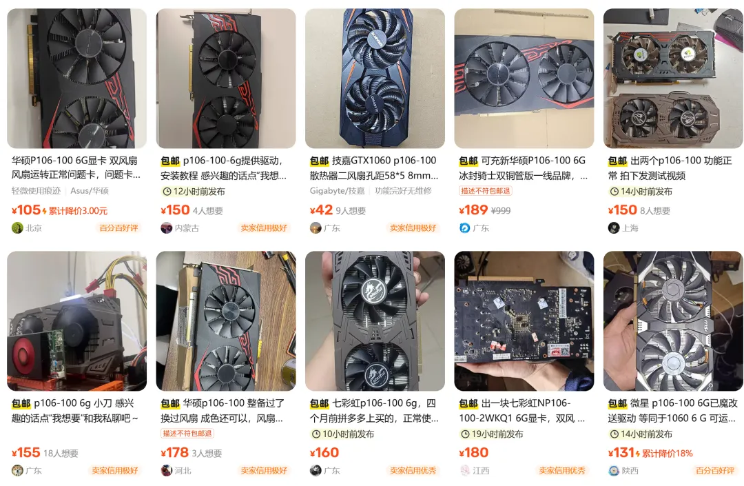 在这样的背景下,那些曾经被矿工们"抛弃"的矿卡,反而成了性价比之王。特别是40HX、30HX、TESLA P4和P106-100这几款矿卡,价格低至300元内,性能却依然能打,成为了许多预算有限用户的首选。