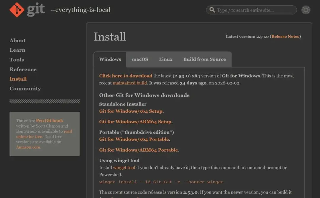 - 进入Git官方下载页(https://git-scm.com/install/windows),选择对应电脑架构的安装包(如Windows x64)。