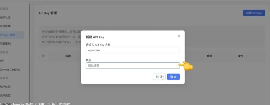 - 选择大模型服务商(如推荐的Moonshot AI,因Kimi对新用户有免费额度),并配置其API密钥(需在Moonshot开放平台创建并复制密钥)。