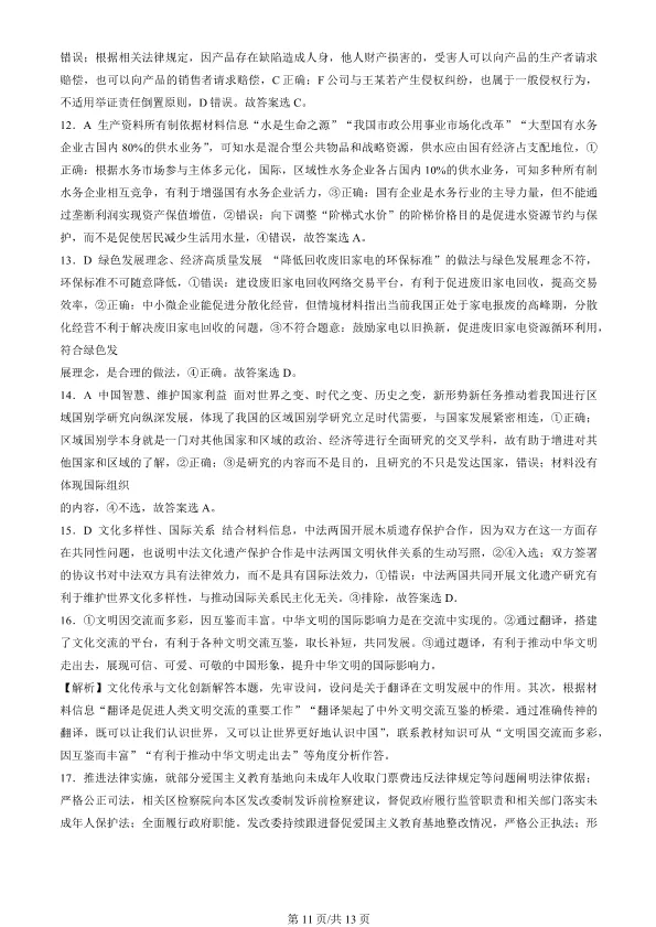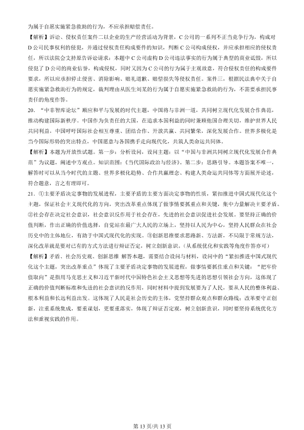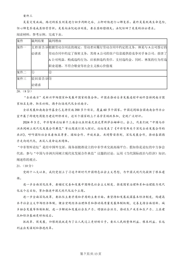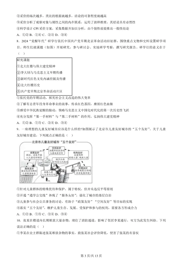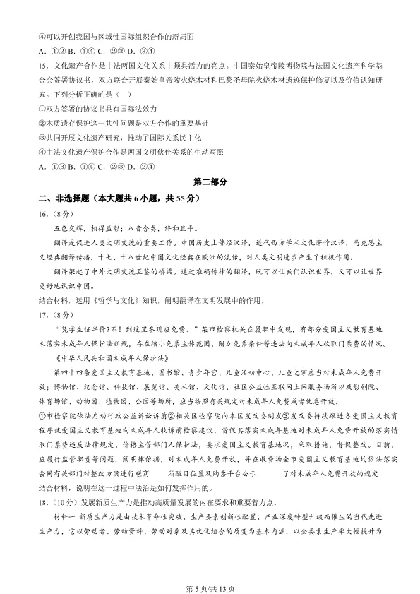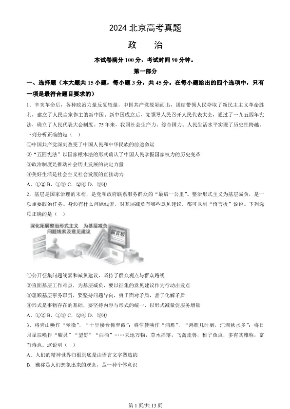 2024北京高考真题政治(有答案) 电子版试卷获取,后台回复:试卷