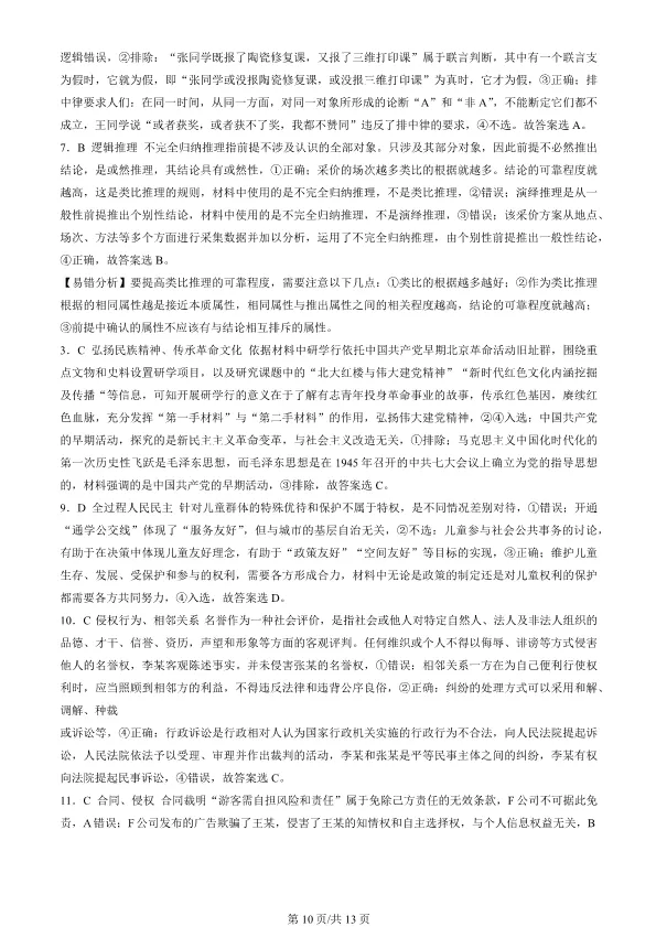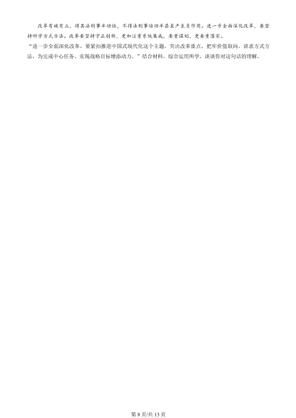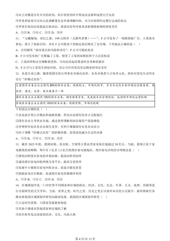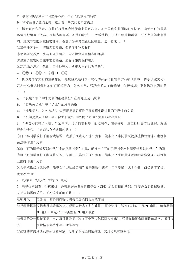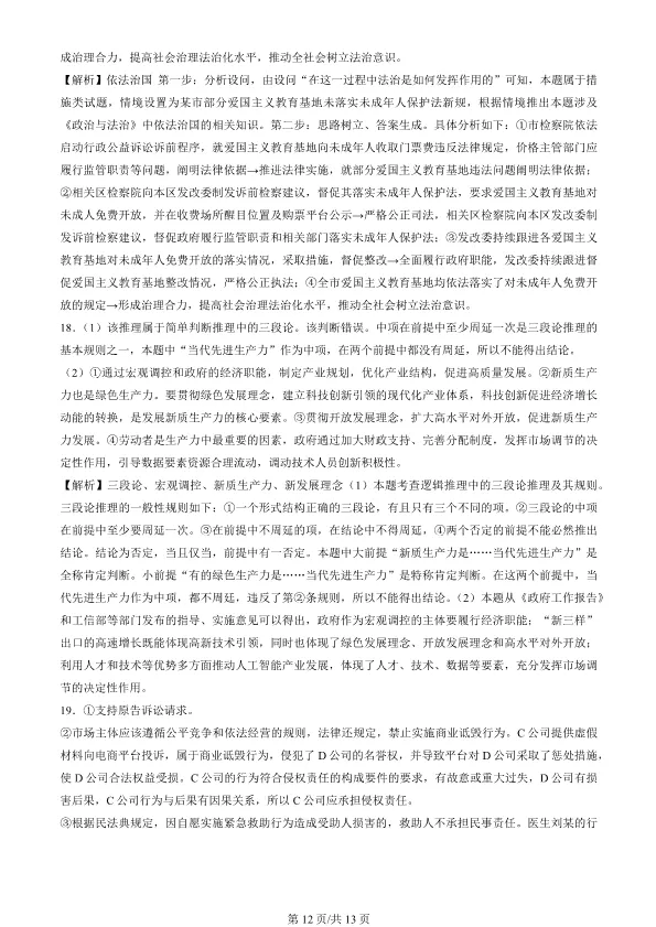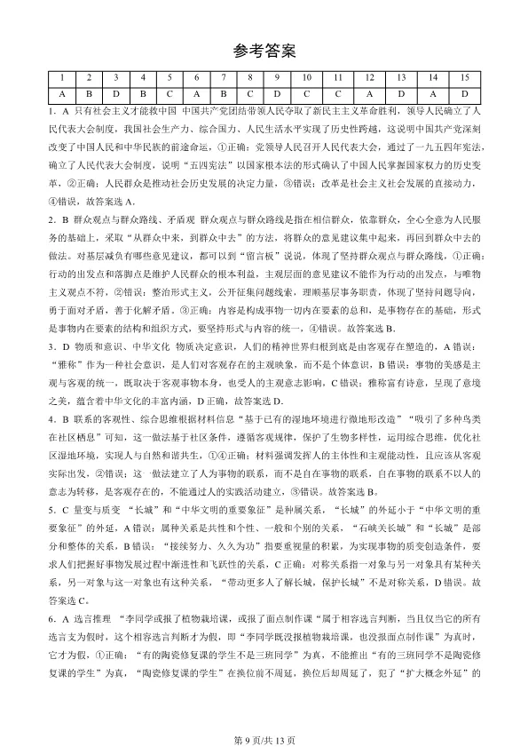 2024北京高考真题政治(有答案) 电子版试卷获取,后台回复:试卷