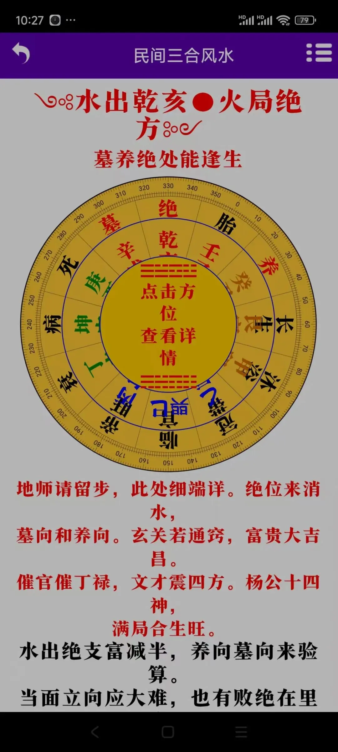 手机版杨公三合风水诀智能罗盘软件手机版杨公三合风水诀智能罗盘软件,卖80元。需要联系我,加微信:A-118774软件介绍:软件包括了以下内容①点击水口可以看水口吉凶②复验旧茔③新立茔地④三合罗盘(包括了四大局水口查询一⑤消砂纳水⑥三合龙水合盘