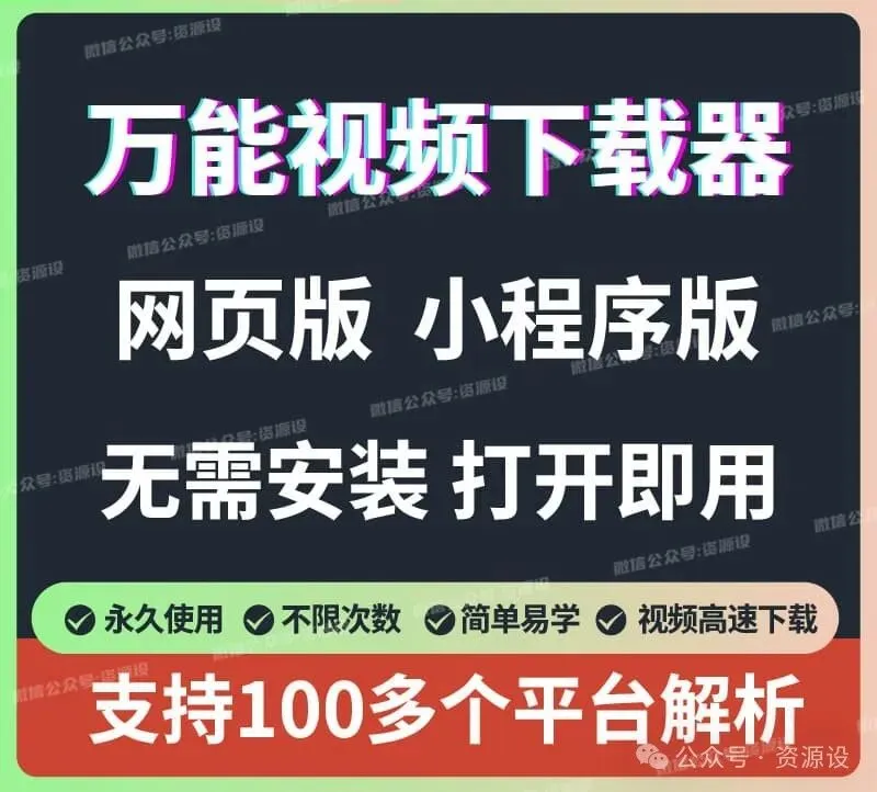 万能视频下载神器,100多个平台都能下载上百个视频平台都能下载上面仅列举部分平台哦包括但不限于视频号平台等等都可以去免费下载可能你还需要更多AI智能资源扫码下图查看哦是不是很获取这些资源呢心动不如行动资源获取方式长按识别下方二维码回复: 视频下载 即可👇👇👇本资源网站下载链接地址:https://www.ziyuanshewz.com/2/lesson.html?id=3390加入资源设VIP会员公众号+网站所有资源直接免费下载且一次加入,终身免费使用上线9年,超10000人开通含免费代找服务,各行业资源都有更多超值会员权益扫码了解👇👇👇VIP会员点击阅读原文,直接获取下载链接