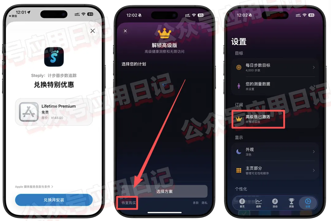 App Store 终身订阅!支持 iOS 16.6~iOS 26.4大家好!分享一个功能丰富的计步器,目前可以免费兑换它的终身订阅,兑换后打开软件进入内购,点击左下角的恢复购买即可!计步器步数追踪软件不仅可以精准每天的步数,还能记录 GPS 路线、监测心率、卡路里、BMI 减重计算等多种健康数据,支持3 种样式的动态小组件实时显示,,还有连续打卡、成就徽章等激励机制。获取方法软件设计精美,功能丰富,喜欢运动记录轨迹的朋友不要错过了,安装需要iOS16.6及以上!兑换方式:1,扫描下面直接兑换2,或复制链接在浏览器打开获取。https://apps.apple.com/redeem/?ctx=offercodes&id=6755107453&code=PREMIUM1003,如果兑换失败说明已经结束,没有名额手慢无!①App Store 无网络限制,速收终身订阅②¥ 0.00 终身买断,永久会员!③iPhone 神操作!一键切换 App Store 账号