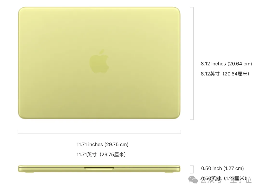 机身厚度1.27厘米,宽29.75厘米,重量1.23kg,差不多 一瓶矿泉水的重量和一本杂志的尺寸。
