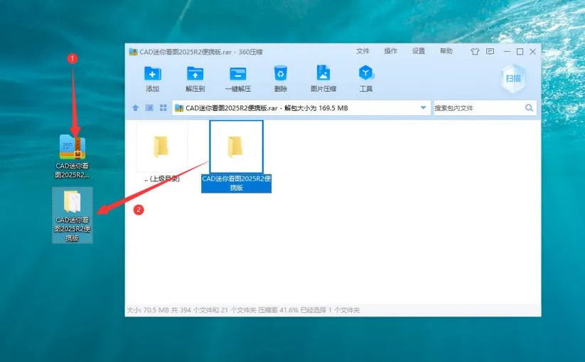 2. 打开“CAD 迷你看图 2025R2 便携版”文件夹,找到