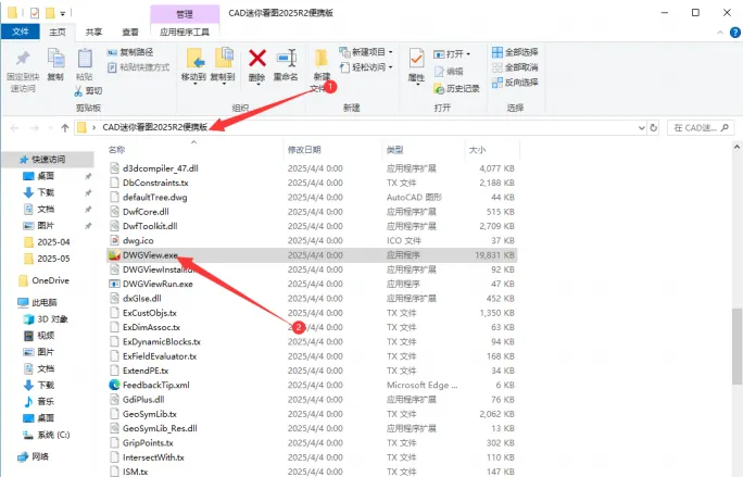 2. 打开“CAD 迷你画图 2025R1 便携版”文件夹,找到
