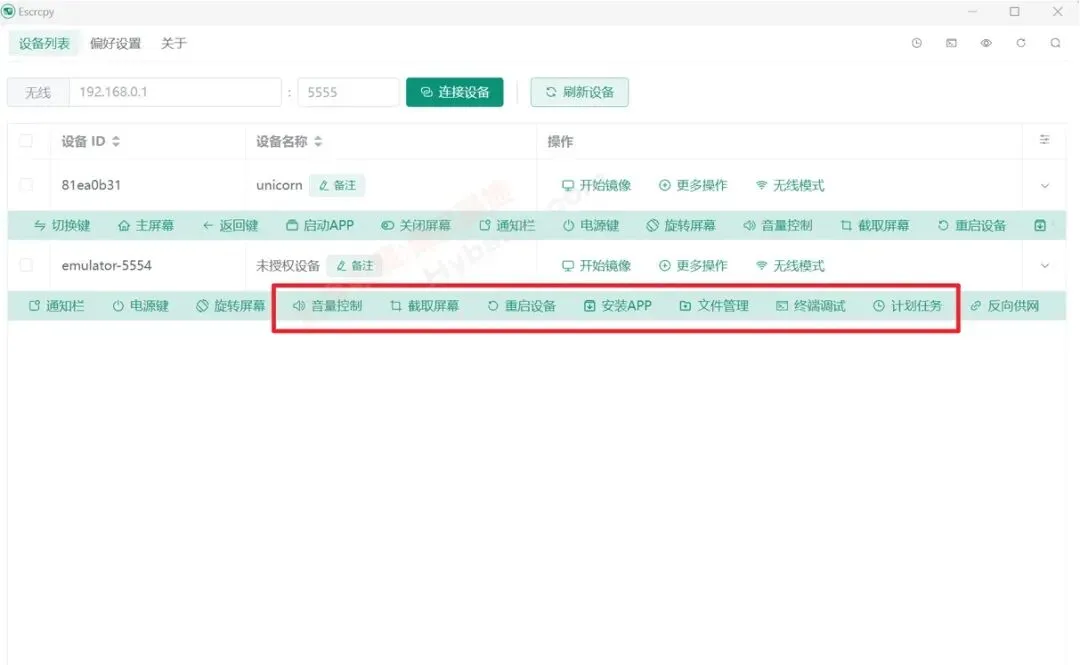 由于 Escrcpy 是基于 scrcpy 开发而来的图形界面工具,类似与「Scrcpy-GUI」,但操作上更加直观,功能也更加丰富,可以方便地管理和连接多台设备。
