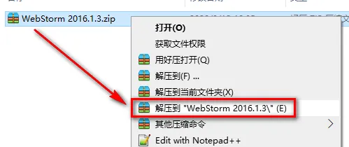 1.鼠标右键解压到“WebStorm 2016.1.3”