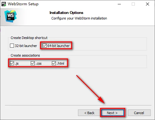 5.勾选与计算机系统相对应的位数,64位操作系统选择64-bit launcher,32位操作系统选择32-bit launcher,勾选Create Associations栏下的内容,点击“Next”