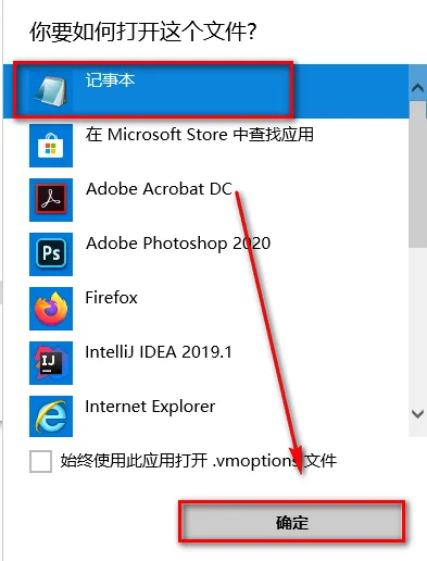 13.选择记事本,点击“确定”