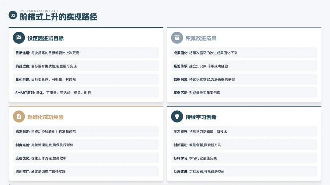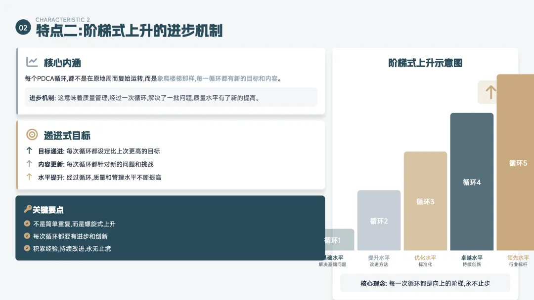 核心逻辑:做事→复盘→优化→再做事,循环往复,螺旋上升。不是做一次就结束,而是不断迭代完善。