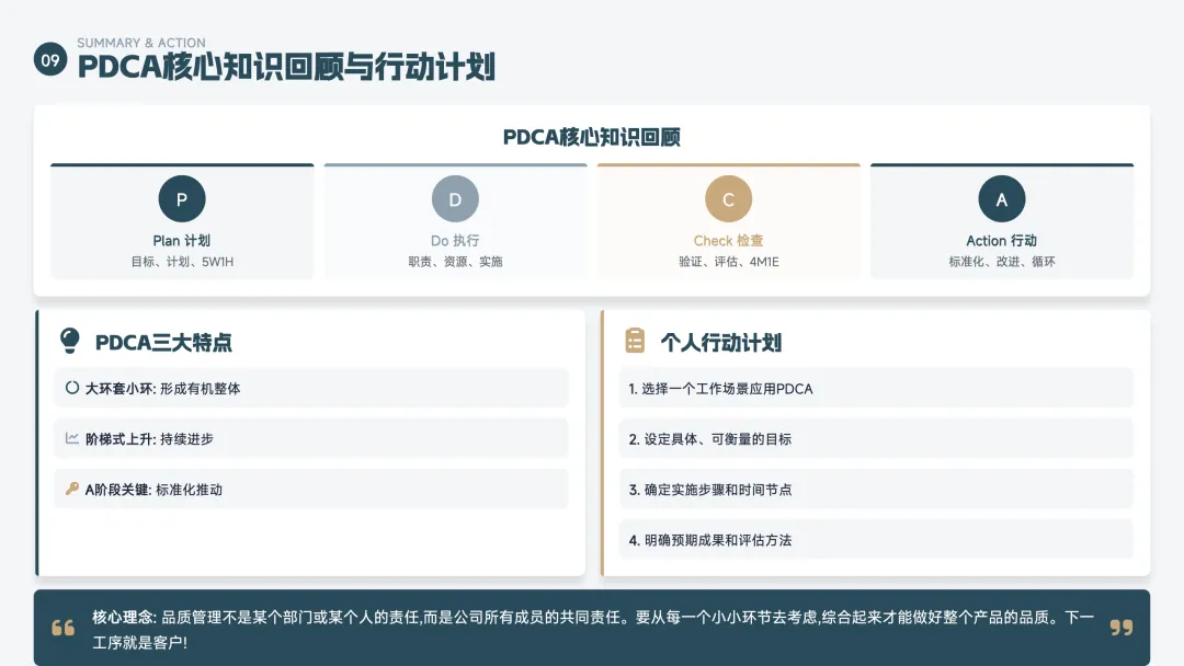 一句话记住:有计划地做事,做完检查效果,好的保留、坏的改进,然后进入下一轮。