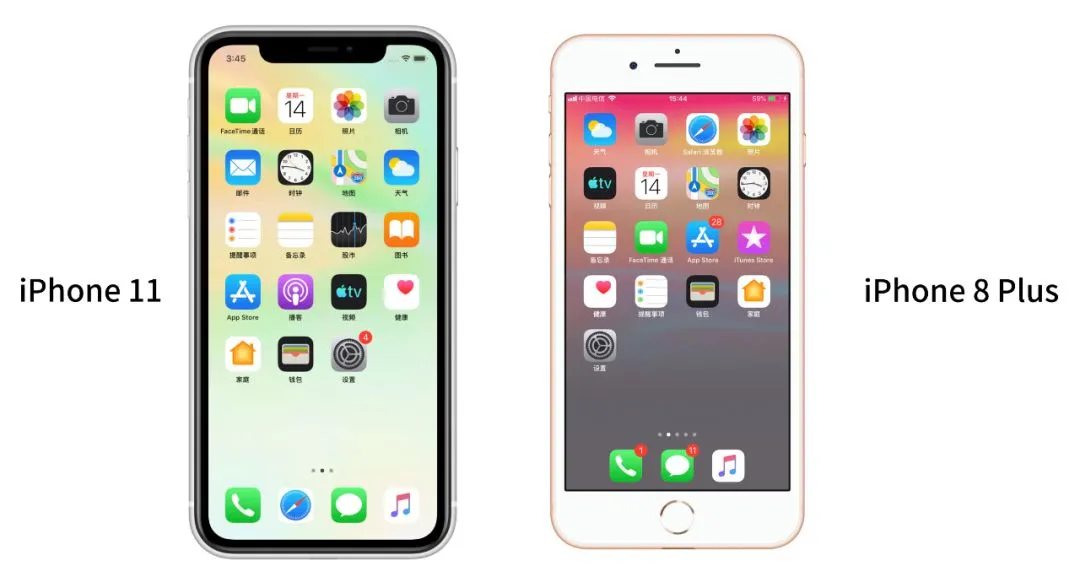 哎妹使用新款的 iPhone 11 和 非全面屏的 iPhone 8P 都成功隐藏了 Dock 栏,如图👇
