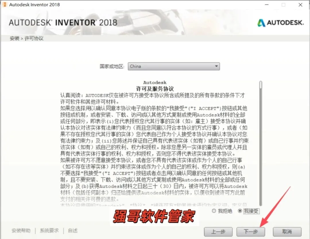 4. 点击我接受,下一步