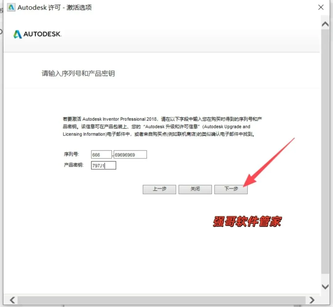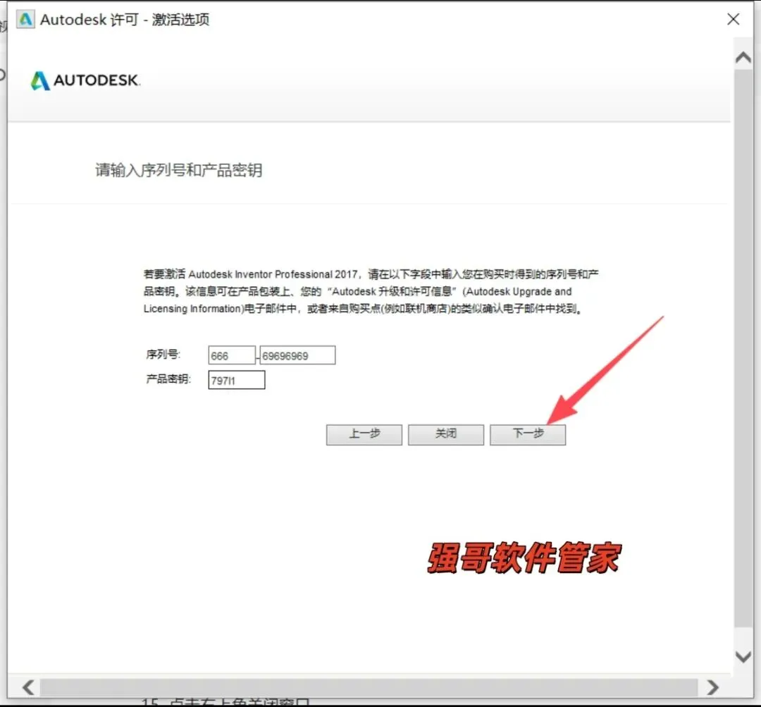 15.输入序列号:666-69696969,密钥:797J1 点击下一步