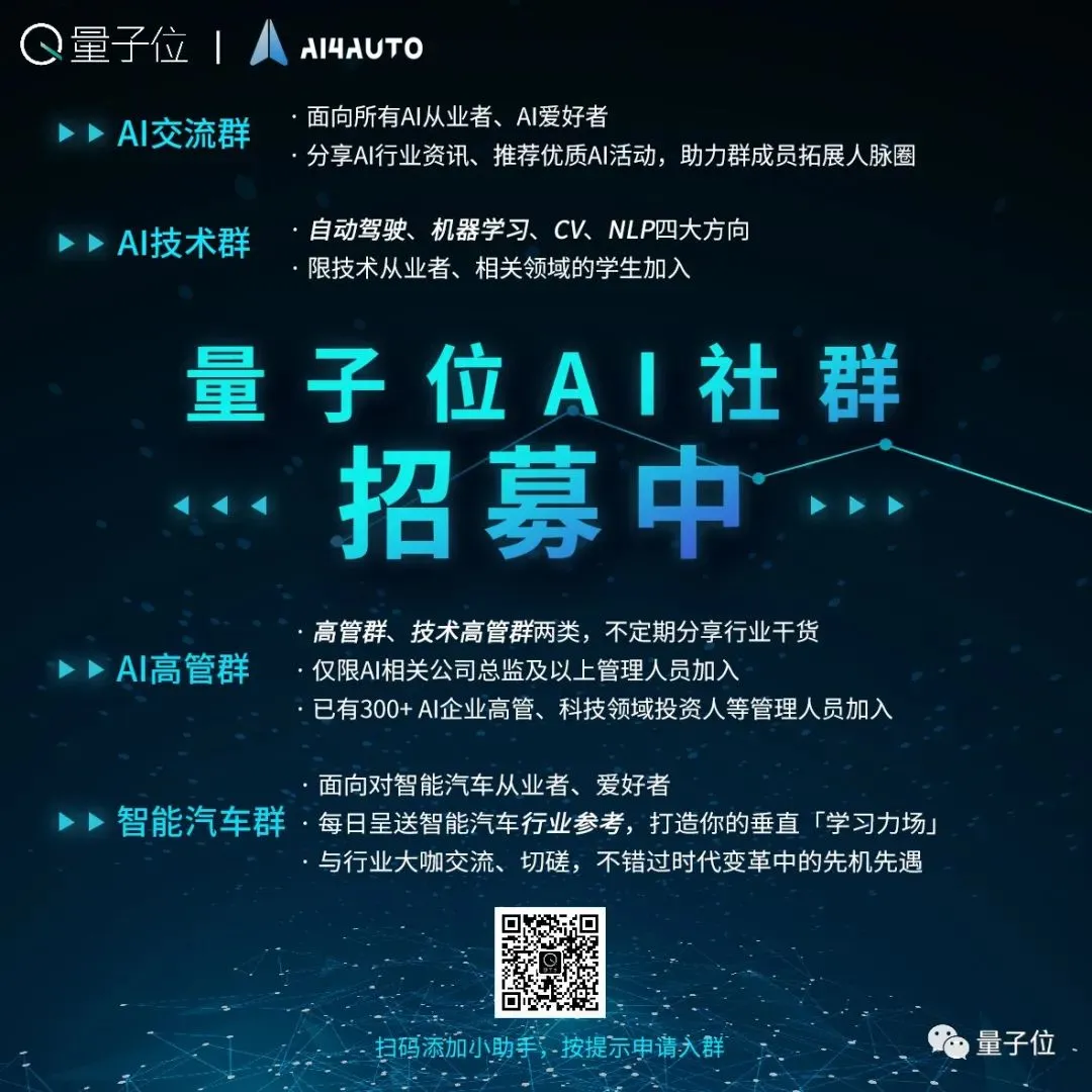 欢迎关注人工智能、智能汽车的小伙伴们加入交流群,与AI从业者交流、切磋,不错过最新行业发展&技术进展。