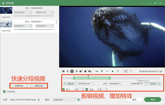 它还自带了编辑功能,录制完成后,用户可以直接在软件内对视频进行剪辑、合并、转换格式等操作,无需再借助其他软件。