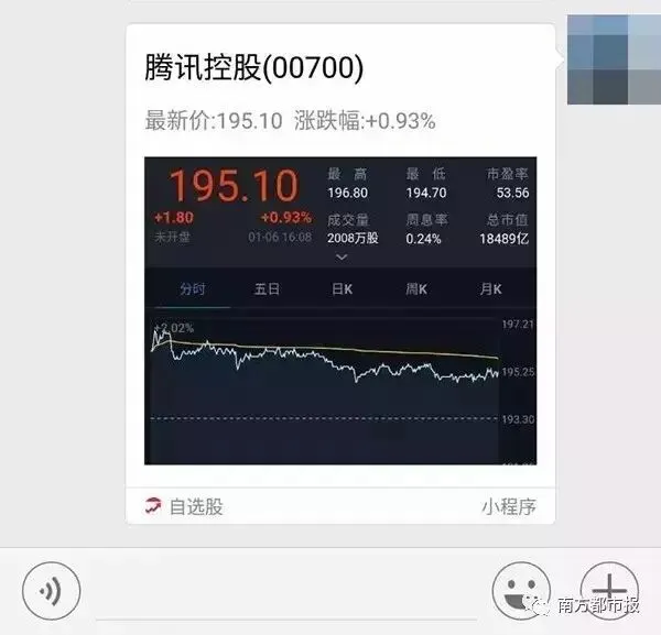 值得注意的是,如果是对具体信息进行分享(如一个视频),点击进入后无法回到该小程序的主页进行其他动作(比如查看其他视频、查看其他股票)。这时候需要通过“发现”-“小程序”进入刚刚朋友分享给你的小程序才可进行全面使用,这与从第三方分享单一商户信息类似,但仍不如包含菜单的微网页(如微店)方便,不知道今后会不会改善。