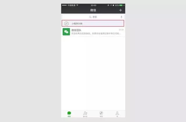 第三步,开启第一个小程序后,你就可以在“发现”一栏看到“小程序”的入口。