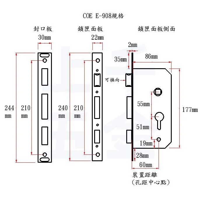 锁舌固定板 | ×2 | 门边固定用,含密封条 |