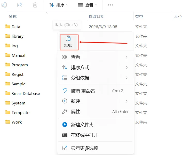 25.鼠标放在空白处,右键选择粘贴
