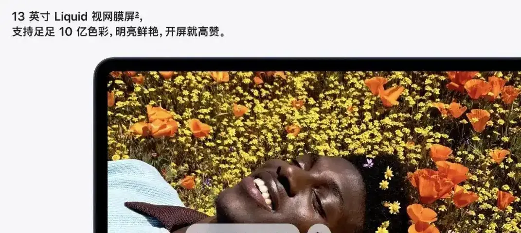这块 13 英寸 Liquid Retina 显示屏的规格为 2408×1506 分辨率、500 尼特亮度,并支持 10 亿色显示。单从参数来看,它的表现其实并不算差。