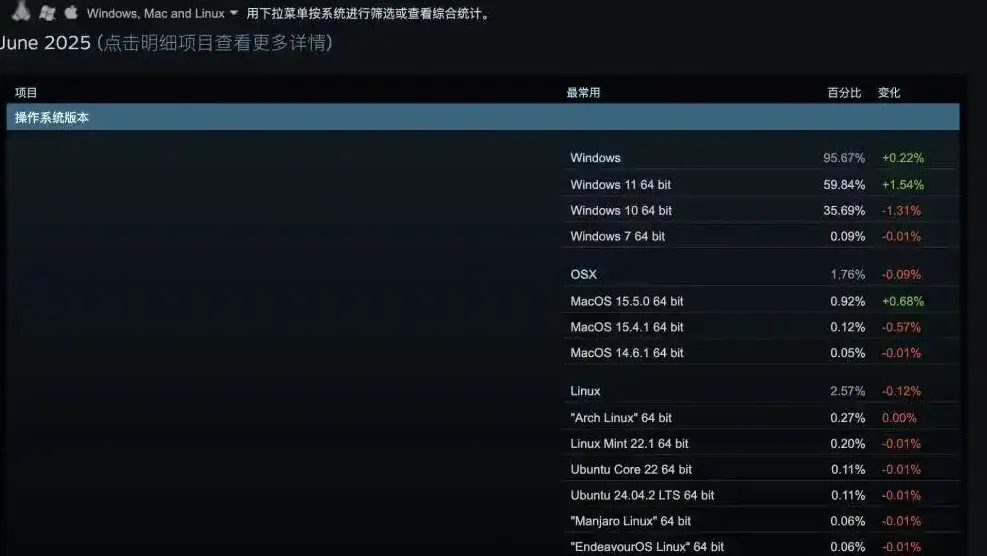 整个Steam上使用macOS的玩家,仅有 1.76%。