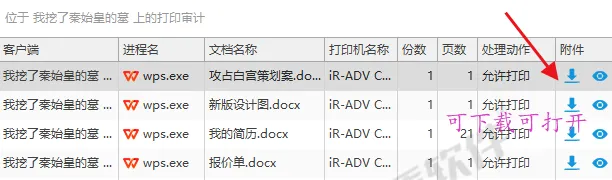打印的文件也会记录下来,出现问题,立刻查询。