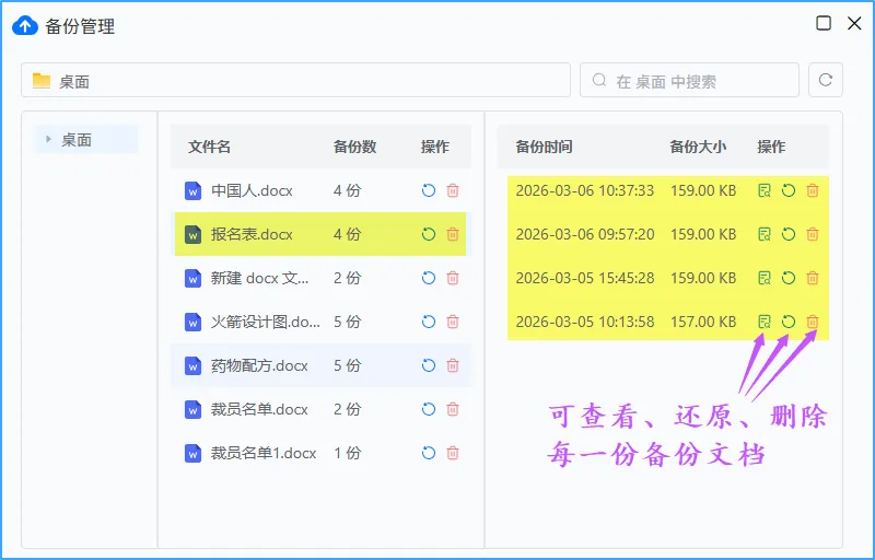 删了?我给你存着。改坏了?我给你复原,找到每一份版本。