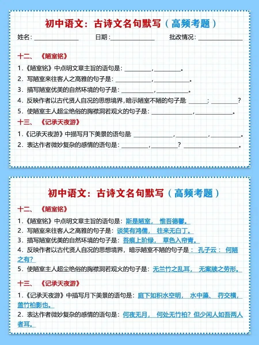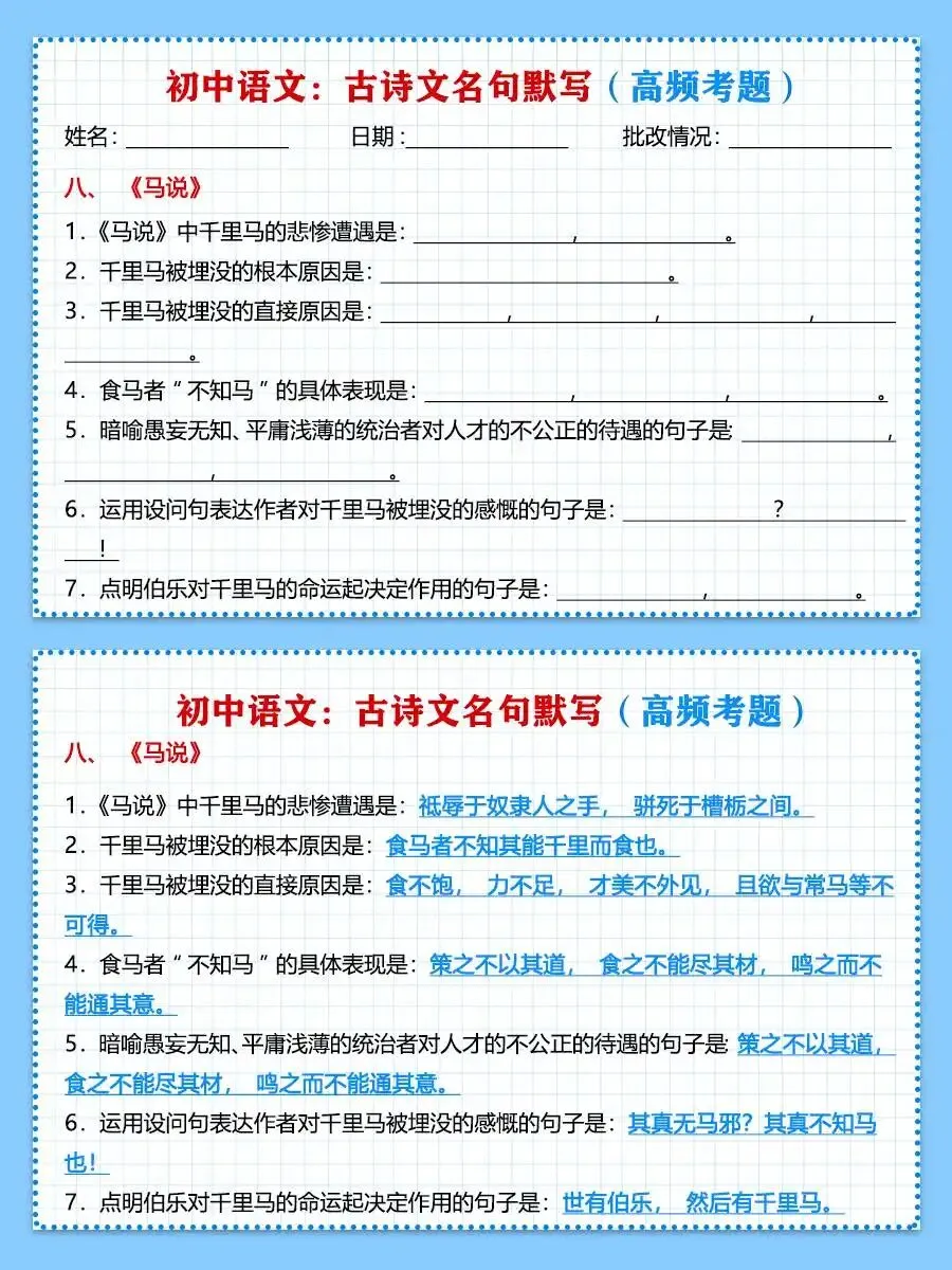 初中语文《古诗文名句默写》含答案(可下载打印)初中语文《古诗文名句默写》初中语文《古诗文名句默写》含答案电子版PDF文档网盘下载链接详见页面底部▼内容预览▼版面所限,此处仅展示部分内容更多内容请自行下载观看下载链接 长按识别下载电子版:扫码保存到网盘后下载网盘下载链接:https://pan.quark.cn/s/f3e9fe8b8ef2复制上边连接,在浏览器里打开,即可下载点击页面底部“阅读原文”,可快速进入下载链接重要说明版权声明:本公众号分享的资源,均为免费公益性分享,仅供学习和教学使用,请勿用于商业用途。所有文件版权归原作者所有,如有侵权可以联系本人删除。本公众号尊重版权,有任何版权问题,可以直接在公众号留言,我看到后会回复。图文音视频素材来源网络,本公众号只作公益性分享,版权归原作者,如有侵权请联系删除。请点个在看,谢谢鼓励哦