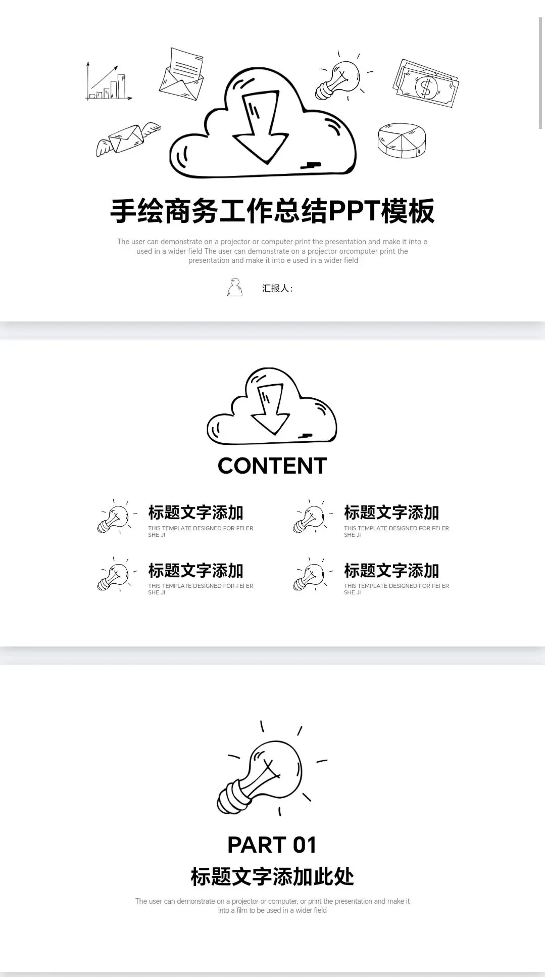 本文分享的是[手绘商务工作总结PPT模板]