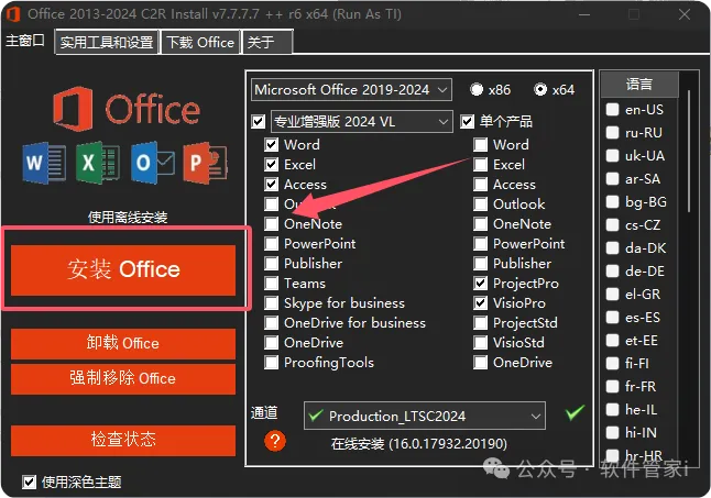 4. 请挑选您需要的版本和相应的Office套件(请注意,Standard 2024版本不可安装)。