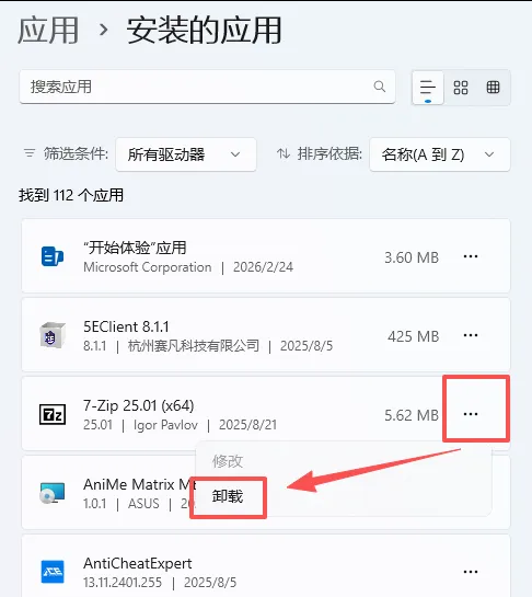 这是最稳妥的零失误基础操作,先把软件核心程序卸载干净,避免留基础残留。点击左下角「开始」→齿轮状「设置」→「应用」→「安装的应用」在应用列表找到要卸载的软件,点击右侧「三个点」,选择「卸载」并二次确认跟着卸载向导操作,全程不要勾选「保留用户数据」,等待卸载完成即可第二招:清理残留文件,释放 C 盘空间