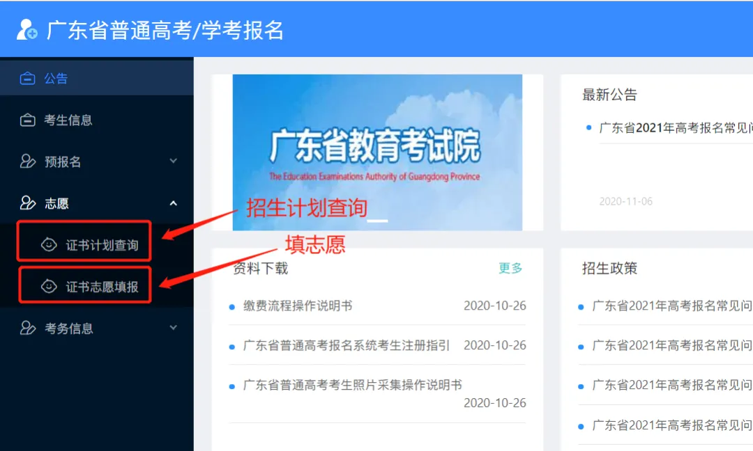 点击首页中的【查询所报志愿】,可以查看自己填报的志愿。