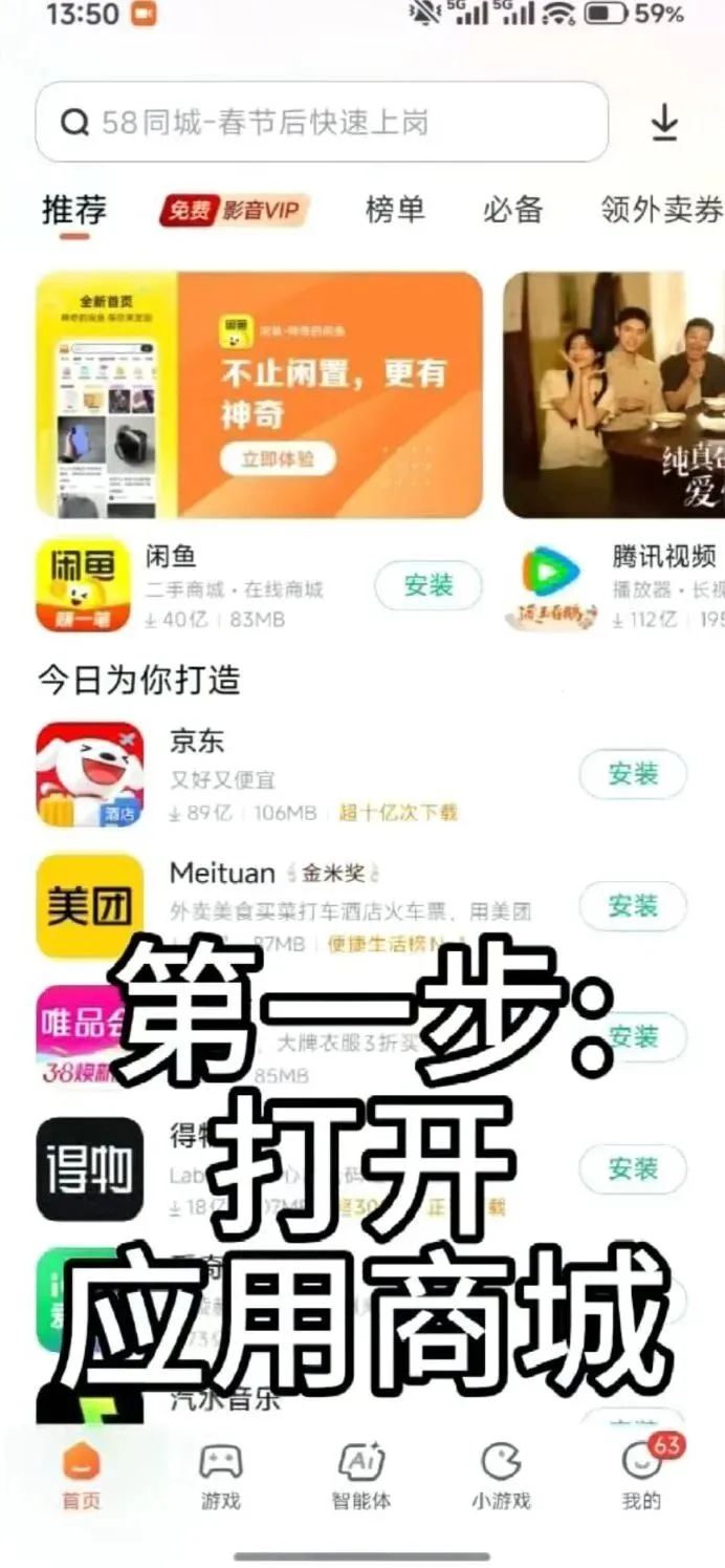 先打开应用商城