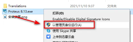 2.选中Proteus 8.13,鼠标右键选择“以管理员身份运行”