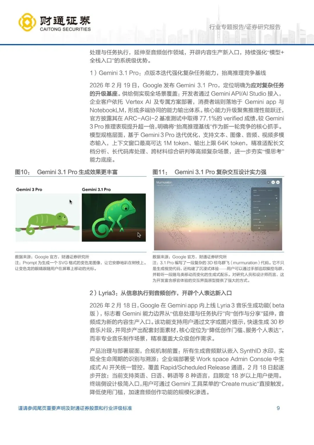 3. Google:Gemini 3.1 Pro在ARC-AGI-2基准取得77.1% verified成绩,较3 Pro翻倍;上下文1M token、输出64K token,已嵌入NotebookLM等5端。Lyria 3 beta上线18小时生成30秒音频片段超120万条,默认植入SynthID水印。