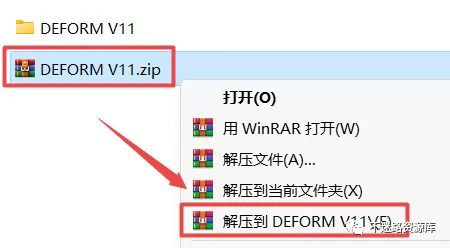 1.选中下载的压缩包,然后鼠标右键选择解压到"DEFORM V11"(没有解压选项点这里)