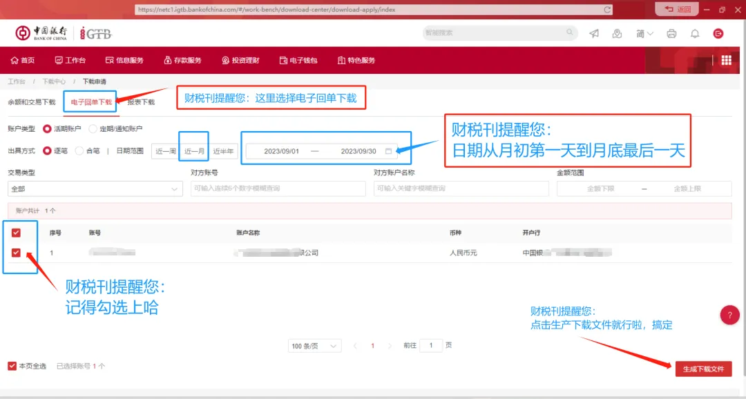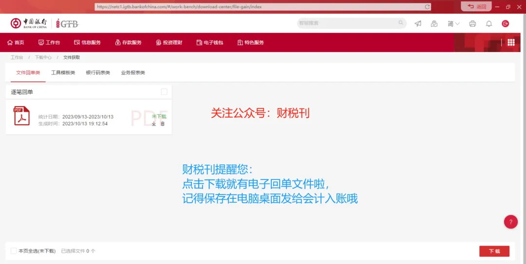 中国银行下载银行回单和对账单指引