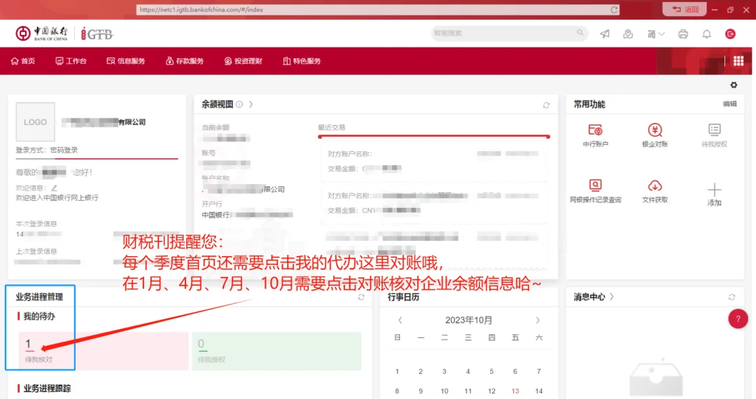 各老板请注意:1月.4月.7月.10月都需要网银对账(每季度需要点击对账,不对账会导致对公银行账户被冻结无法使用)