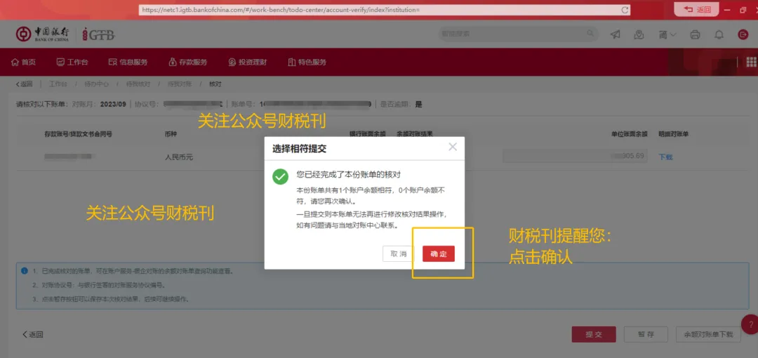 确定提交已完成即可~(季度未操作对账可能导致银行账户无法正常收付款)