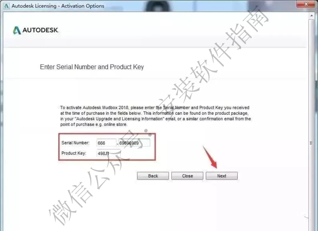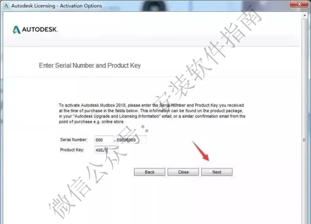 13.输入序列号密钥,点Next