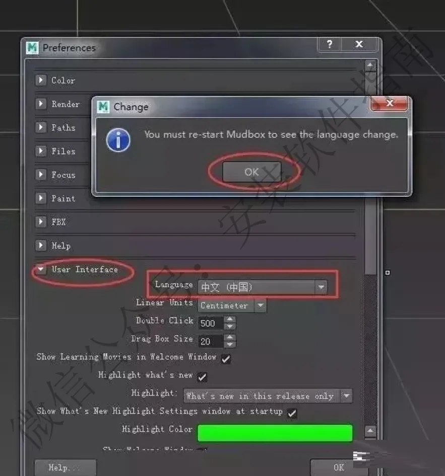 21.点User Interface,Language中文(中国)点OK,退出软件