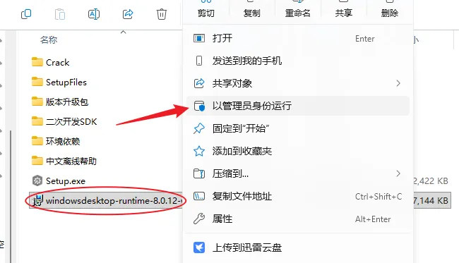 3.找到【windowsdesktop…】应用程序,右键选择【以管理员身份运行】它。