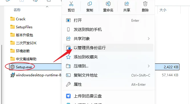 7.回到ArcGIS Pro 3.6文件夹,找到【Setup】应用程序,右键选择【以管理员身份运行】它。