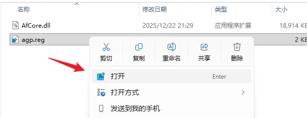 25.找到粘贴的【agp】文件,右键【打开】它。
