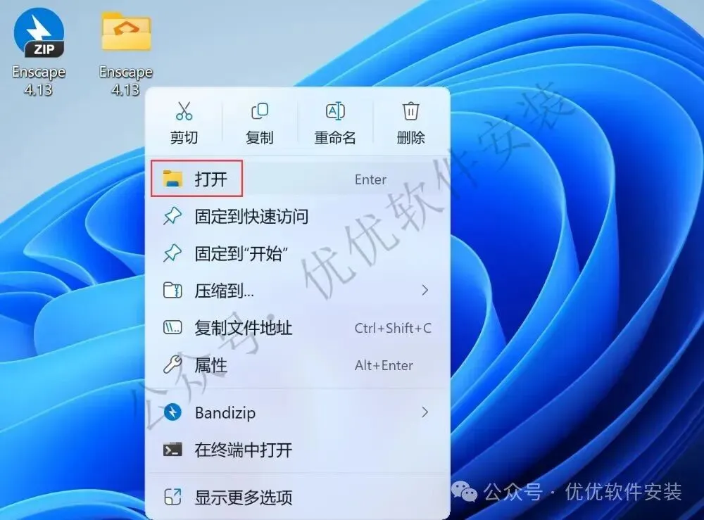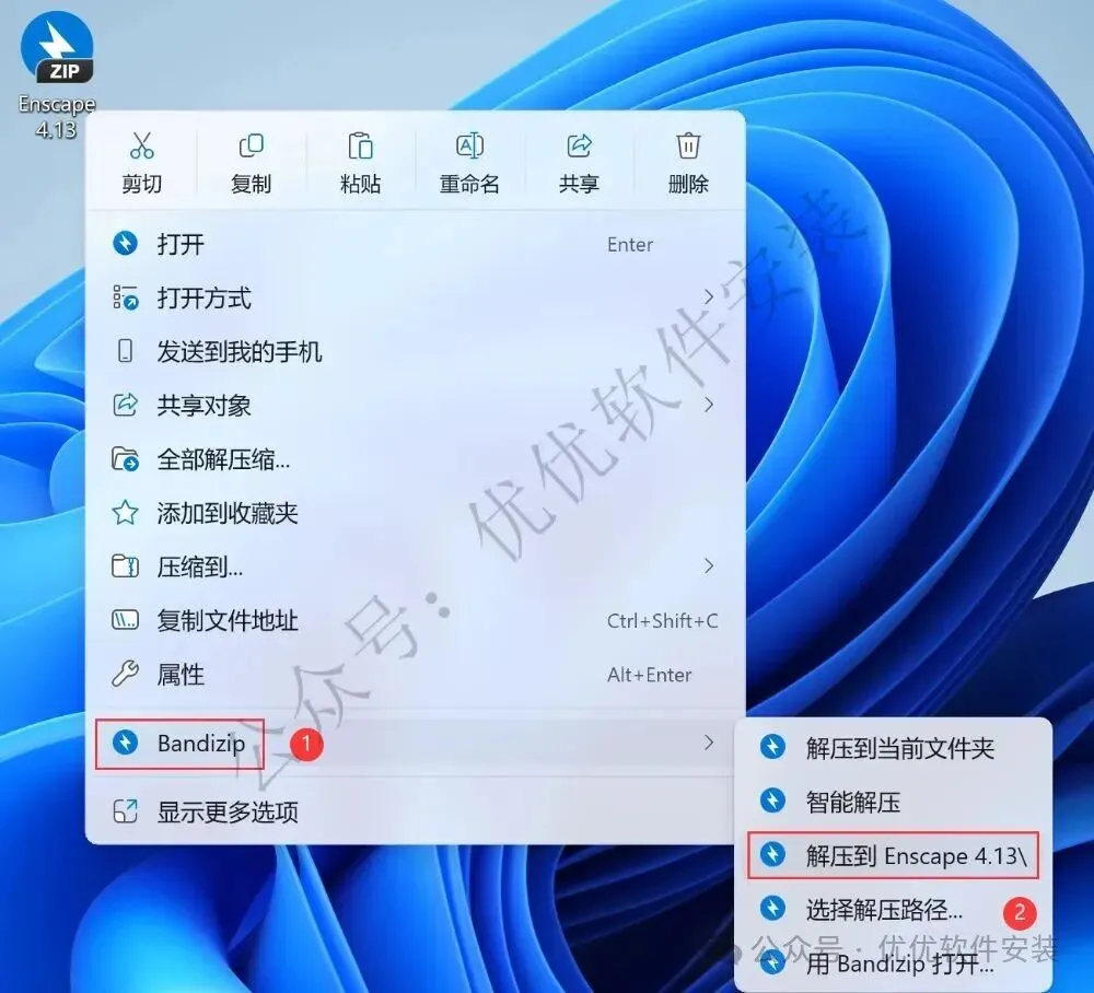 1、下载Enscape 4.13软件安装包到电脑上,右键选择【解压到Enscape 4.13\】