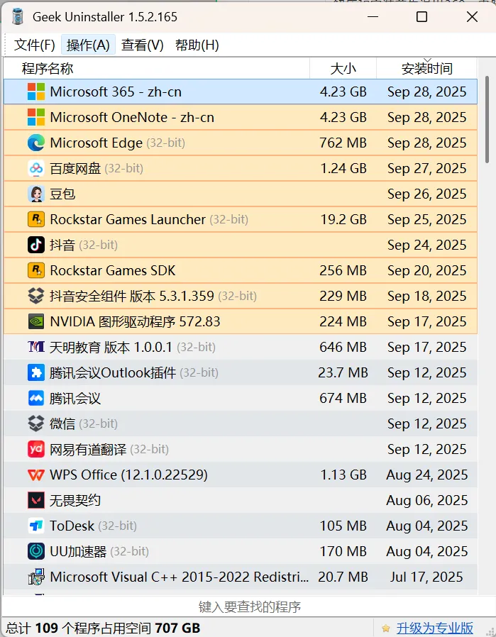 Geek Uninstaller 是 Windows 平台上轻量高效、免费纯净的专业卸载工具,单文件免安装、体积小巧,启动与扫描速度快。它能在卸载后深度清理残留文件、文件夹与注册表项,比系统自带卸载更彻底;支持强制卸载顽固 / 损坏程序,也可卸载微软商店应用,界面简洁、操作直观,适合日常电脑维护与干净卸载软件。