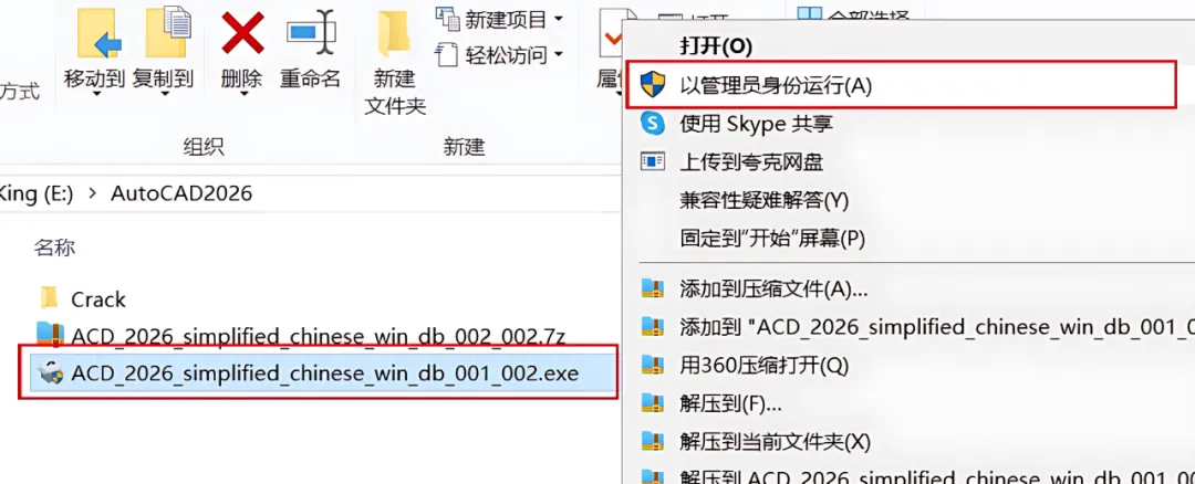 1.打开下载好的CAD2025安装包,鼠标右击【ACD_2026***】安装程序,选择【以管理员身份运行】。
